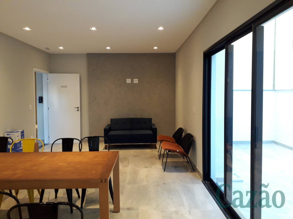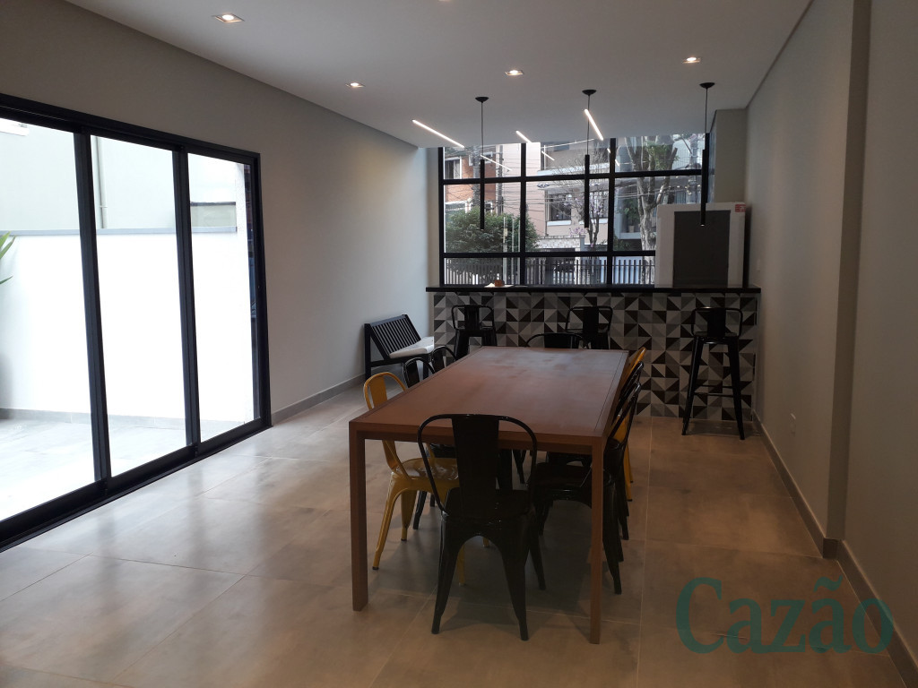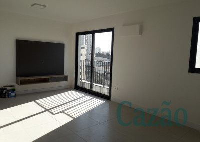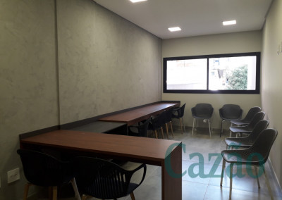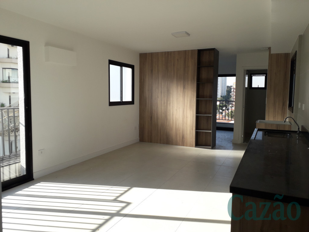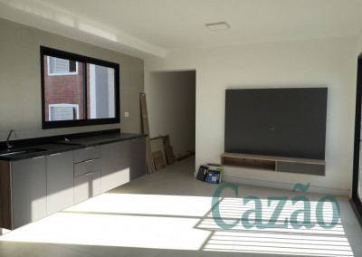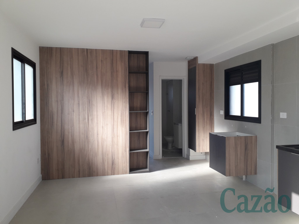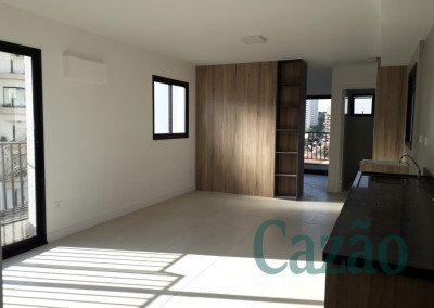 Unidade 63 - Locação, Studio 50 m2, está com armário no dormitório, gabinete das pias, cooktop, rack e painel, box, possui 1 vaga de garagem fixa e determinada. Água,luz e gás encanado individualizados, infra para ar condicionado.